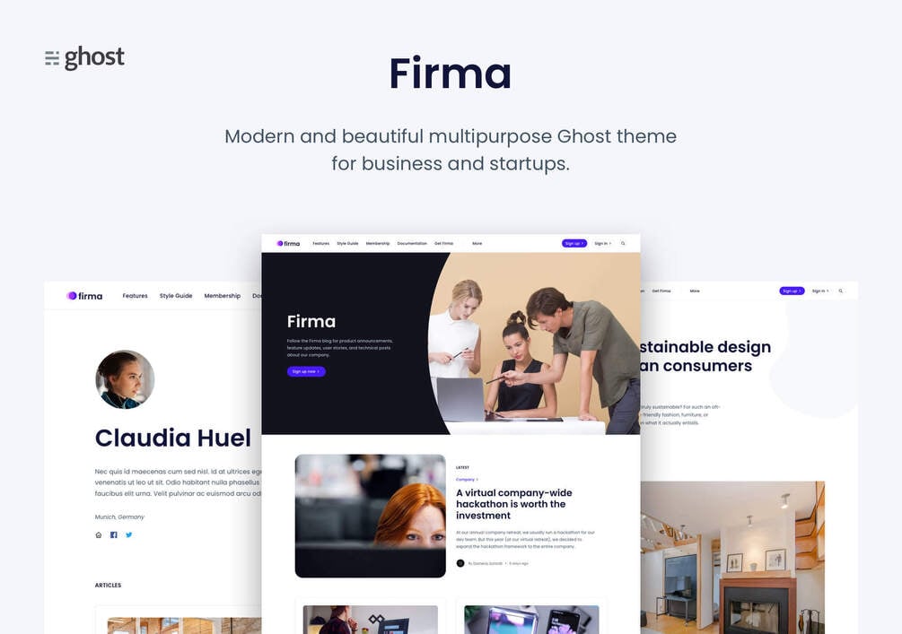 Firma is a Ghost theme that can be used by startups to large companies to publish any kind of articles related to their business. It stands out for its clean design and is able to adapt to any company's identity.